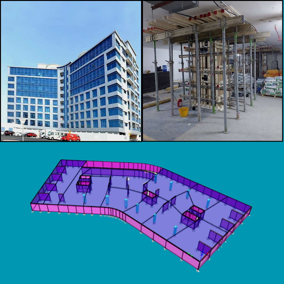 Representative locations were selected for detailed investigation using both non-destructive and destructive testing methods. The structural performance of the basement raft slab was evaluated using finite element modelling in SAFE, considering both the raft and pile cap as thick shell elements.